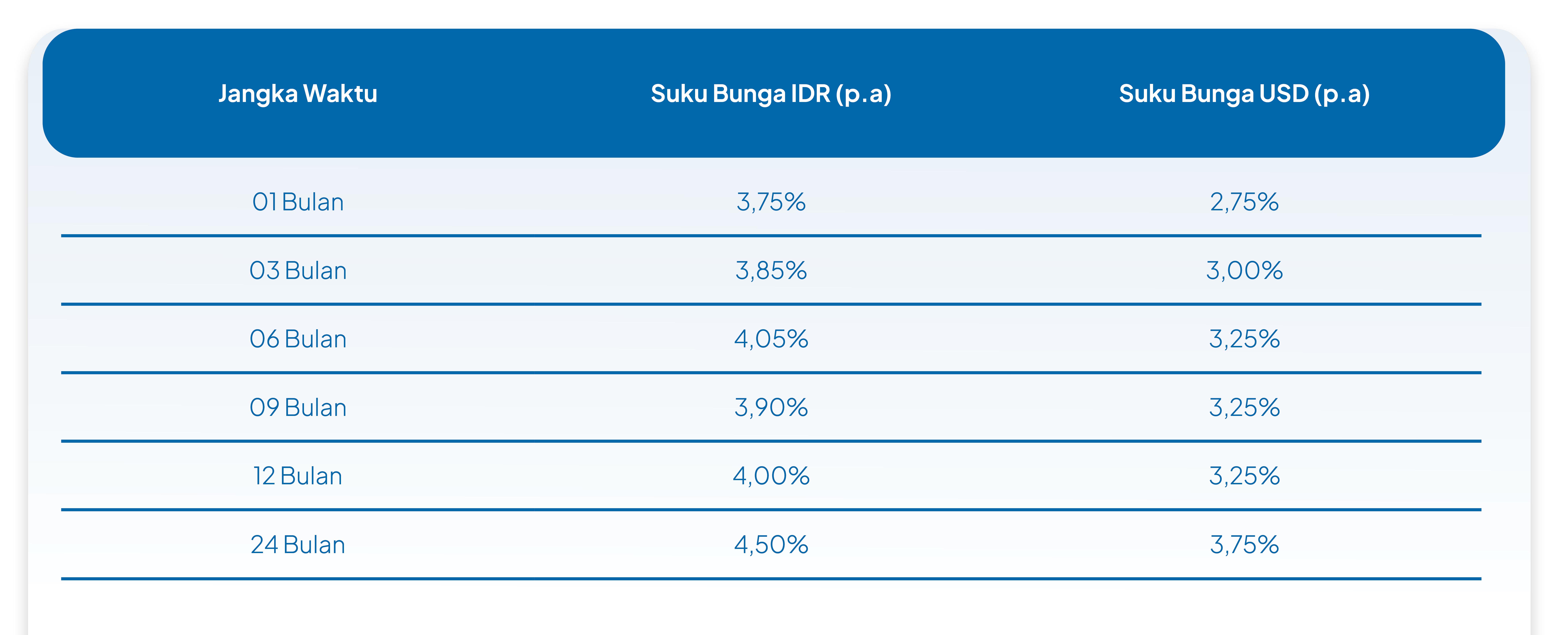Kapanpun, dimanapun tetap dapet CUAN sampai dengan 4,00% p.a untuk mata uang USD dan sampai dengan 5,50% p.a untuk mata uang IDR